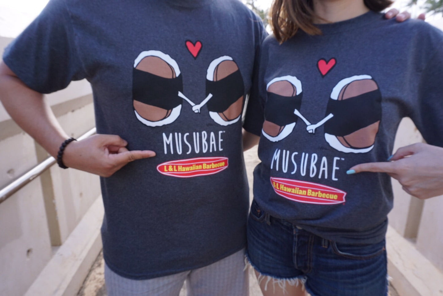 Let your Bae know how you feel about them with our popular MusuBAE shirts. Featuring our famous L & L Hawaii SPAM Musubi.